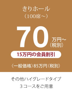 少人数~200名様まで、ご会葬いただく人数により選べる3式場をご用意。